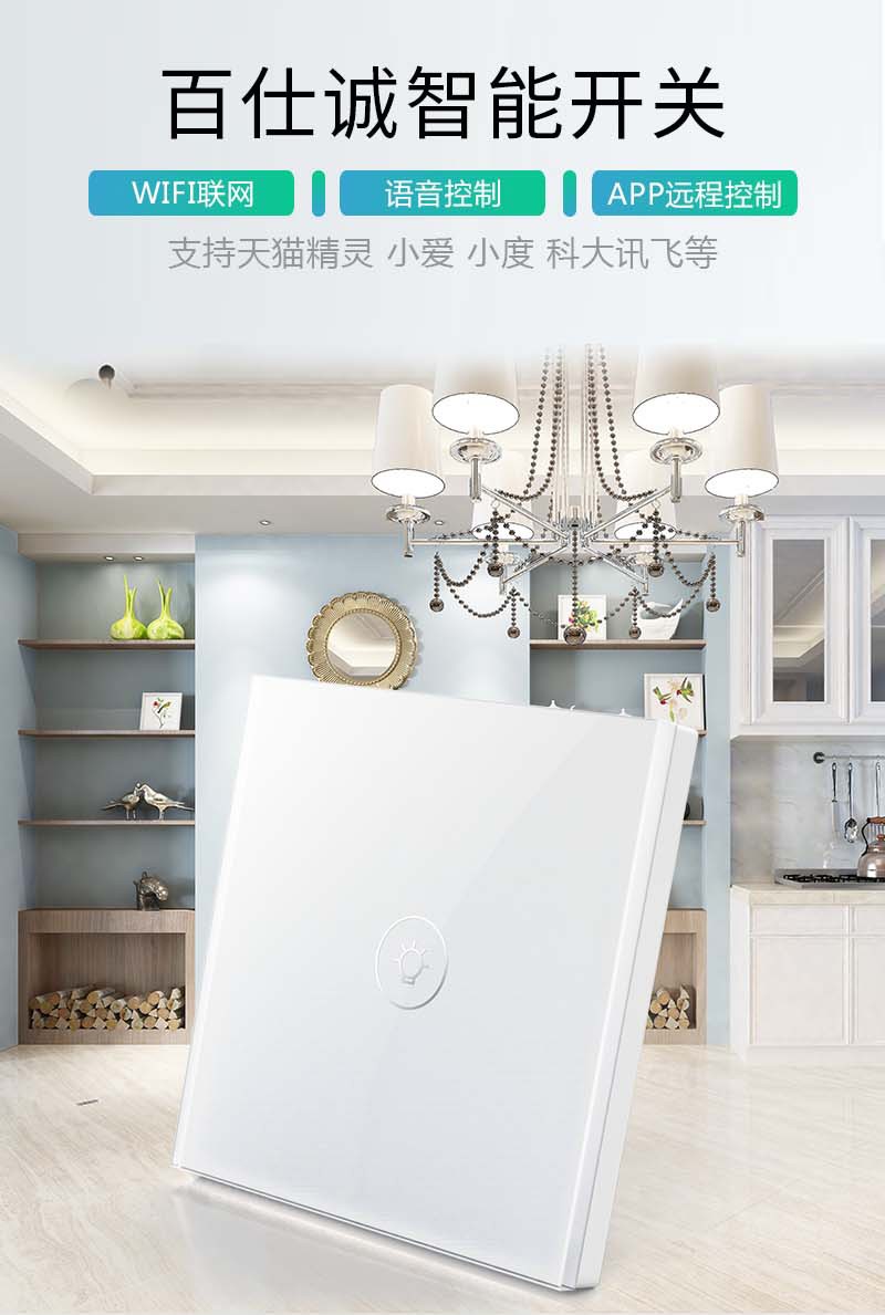 智能觸控平面鋼化玻璃式一位開(kāi)關(guān)面板_百仕誠(chéng)
